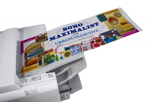 Soporte de Medios Diversos. Admite una amplia variedad de tamaños y tipos de papel, desde sobres y tarjetas hasta formatos grandes. La capacidad de soportar gramajes de hasta 400 gsm facilita la creación de materiales personalizados y de alta resistencia.